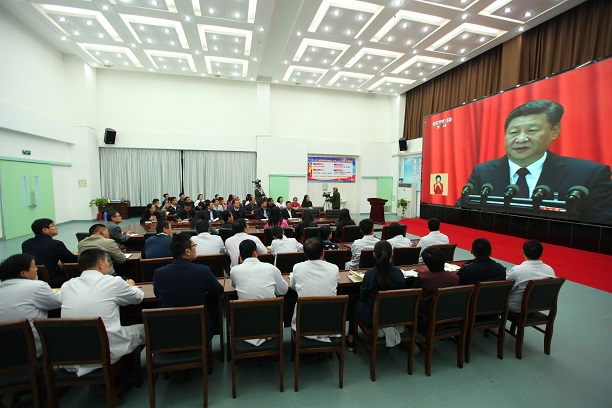 10月18日上午9:00,中国共产党第十九次全国代表大会在北京人民大会堂开幕。市残联组织全体党员干部在康复中心多功能厅集中收看会议实况直播,认真聆听、学习了习近平总书记代表十八届中央委员会向大会所作的报告。